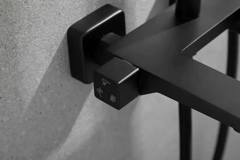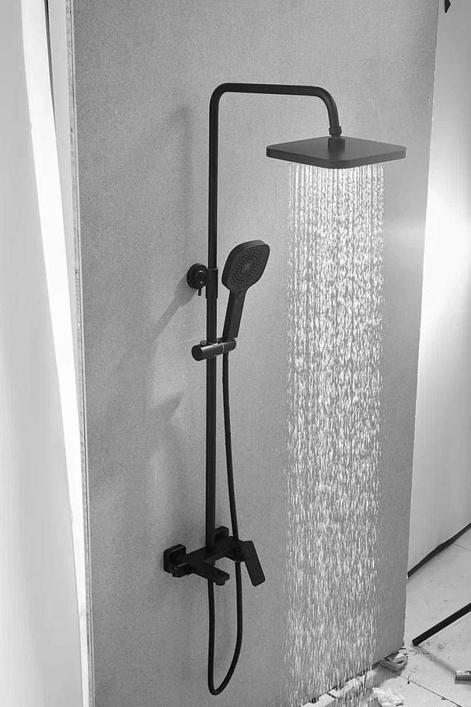 Душевая система Shevanik S9736H, черный.Количество режимов струи: 3.Размер верхнего душа: 22,5x22,5 см.Управление: рычажное.Излив для наполнения ванны: да.