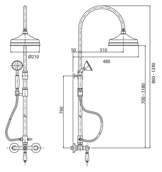 Размер верхнего душа: 21 см