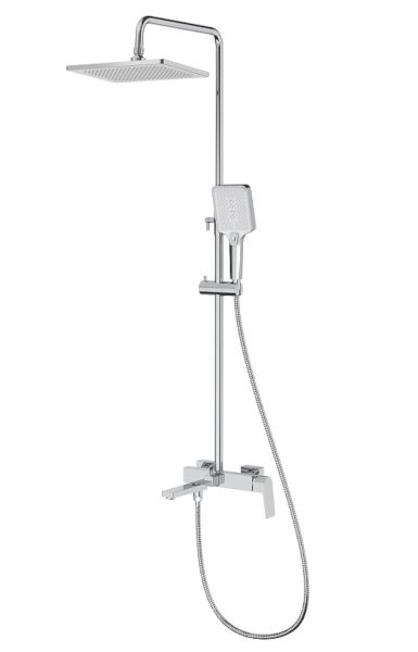 Душевая система Splenka S02.24. Цвет: хром. Материал: латунь. Управление: однорычажное. Механизм: керамический картридж. Излив: поворотный. Аэратор. Стандарт подводки: G 1/2. Форма верхнего душа: прямоугольная. Размер верхнего душа (ШхД): 320х210 мм. Количество режимов струи ручного душа: 3. Регулируемая душевая штанга: 625-1275 мм. Монтаж: на стену.