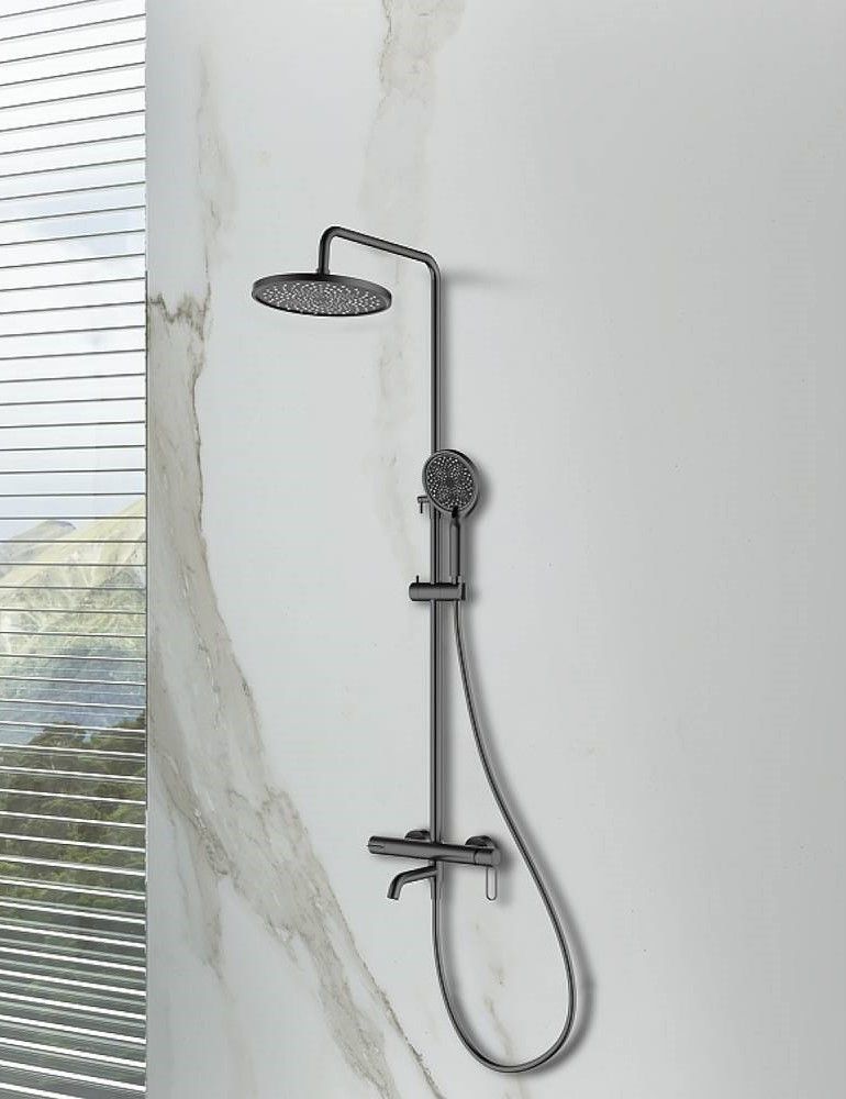 Душевая система Splenka S03.24.09. Цвет: графит. Материал: латунь. Управление: однорычажное. Механизм: керамический картридж. Излив: поворотный. Аэратор. Стандарт подводки: G 1/2.