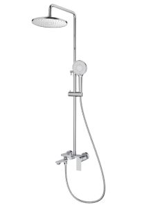 Форма верхнего душа: круглая. Диаметр верхнего душа: 250 мм. Количество режимов струи ручного душа: 3. Регулируемая душевая штанга: 640-1210 мм. Монтаж: на стену.