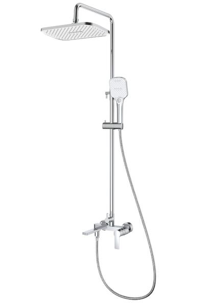 Душевая система Splenka S06.24. Цвет: хром. Материал: латунь. Управление: однорычажное. Механизм: керамический картридж. Излив: поворотный. Аэратор. Стандарт подводки: G 1/2. Форма верхнего душа: прямоугольная. Размер верхнего душа (ШхД): 320х210 мм. Количество режимов струи ручного душа: 3. Регулируемая душевая штанга: 770-1425 мм. Монтаж: на стену. Излив - функция переключения.