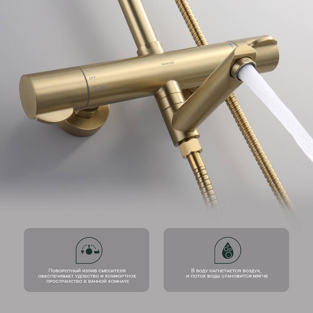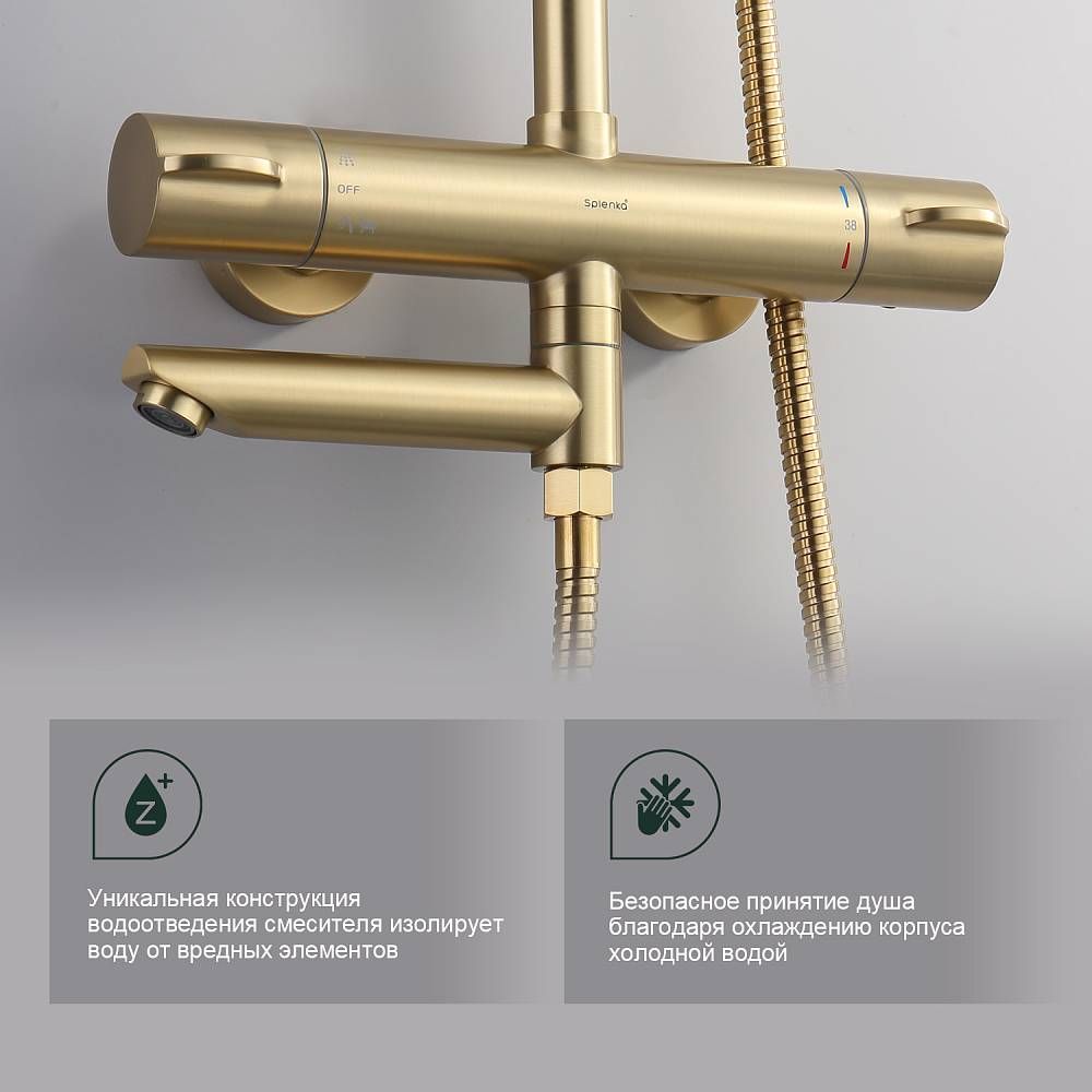 Душевая стойка Splenka S223.26.03 с термостатом золотой сатин купить
