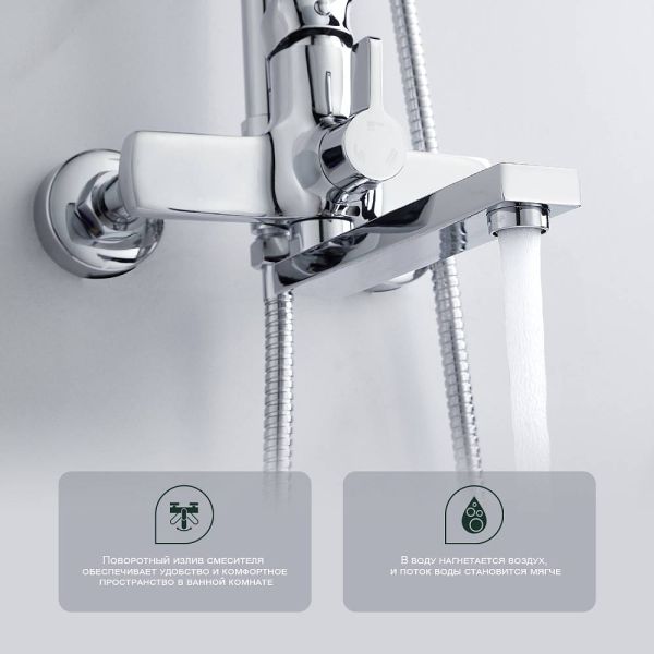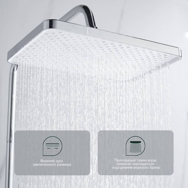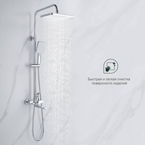 Душевая система Splenka S30.24, хром. Душевая система подходит для ванны и душа. Излив у системы имеет функцию переключения режима подачи воды. Верхний душ имеет прямоугольную форму размером 32 на 21 см. Ручная лейка у системы 3-х режимная. Лейки изготовлены из авс-пластика.