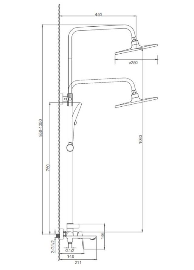 Размер верхнего душа, см:25