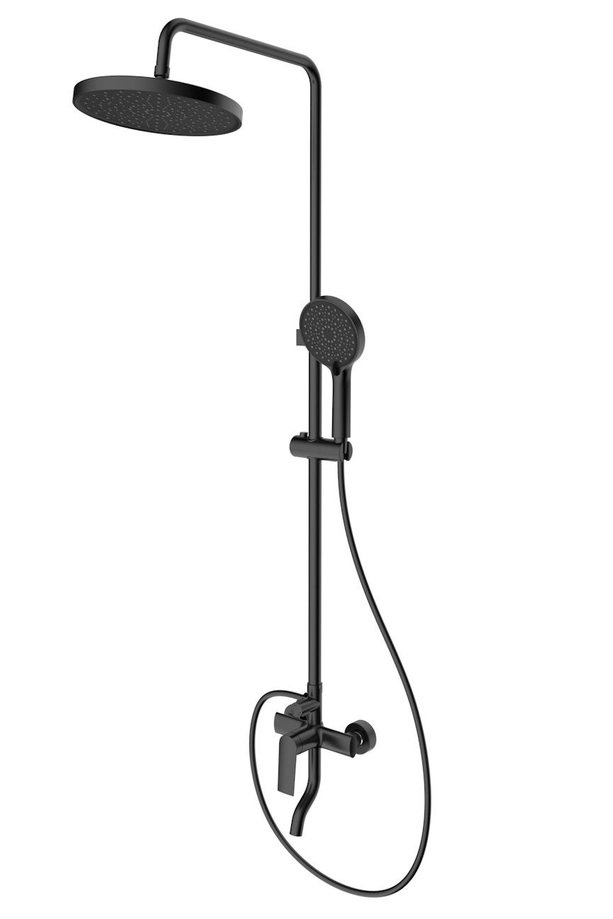 Душевая система Splenka S50.24.06, черный. Душевая система подходит для ванны и душа. Верхний душ имеет круглую форму размером 25 см. Ручная лейка у системы 3-х режимная. Лейки изготовлены из авс-пластика.