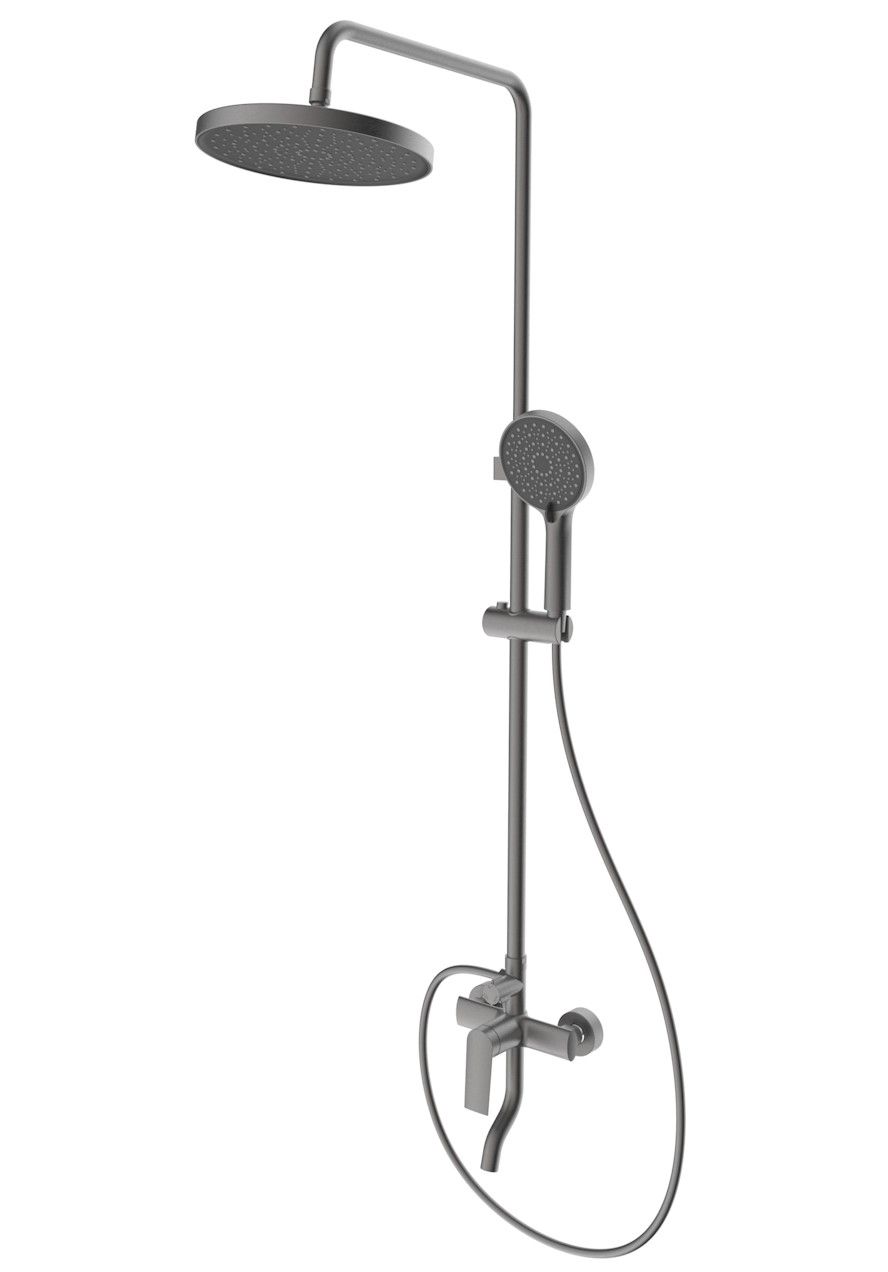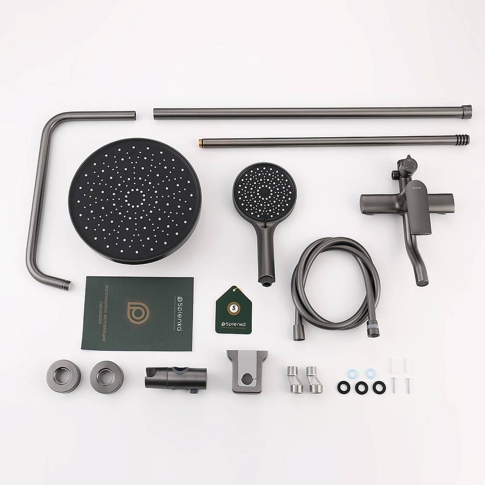Душевая система Splenka S50.24.09, графит. Душевая система подходит для ванны и душа. Верхний душ имеет круглую форму размером 25 см. Ручная лейка у системы 3-х режимная. Лейки изготовлены из авс-пластика.