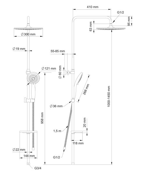 Семейный душ Swedbe Hermes исполнен в лучших традициях шведского дизайна. Верхняя душевая насадка - 300 мм, цвет: серый. Ручной душ 3 - режима - 121 мм, цвет: серый. 3D-дизайн. На душевом диске ручной лейки установлен переключатель режимов распыления воды. Три типа струй подарят весь спектр ощущений — от стандартного режима до приятного тонизирующего массажного эффекта. Подключения к термостату сверху.