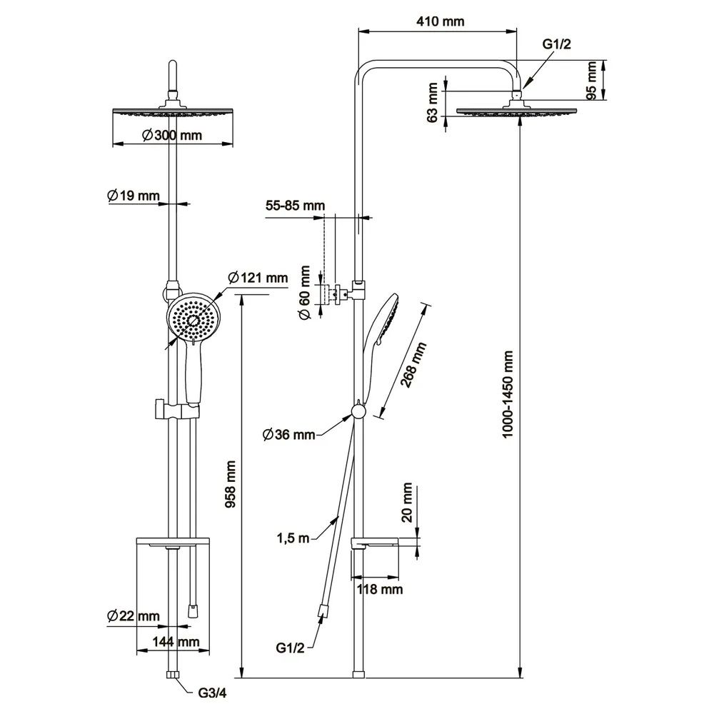 Душевая стойка Swedbe Hermes 9090G1GH с термостатическим смесителем для ванны хром/серый купить