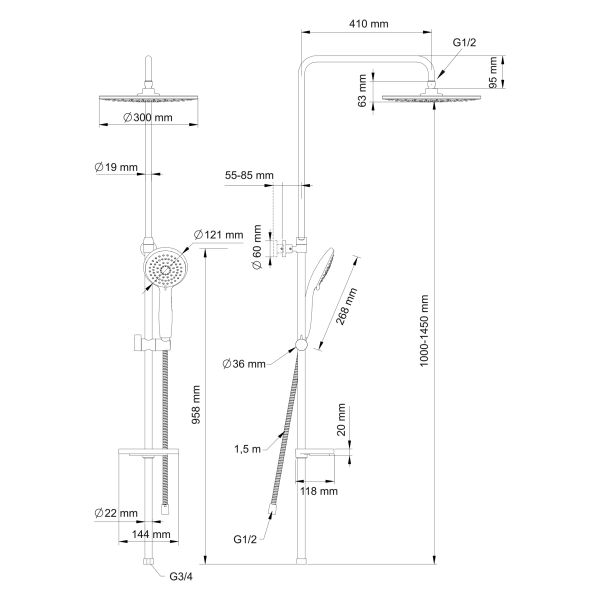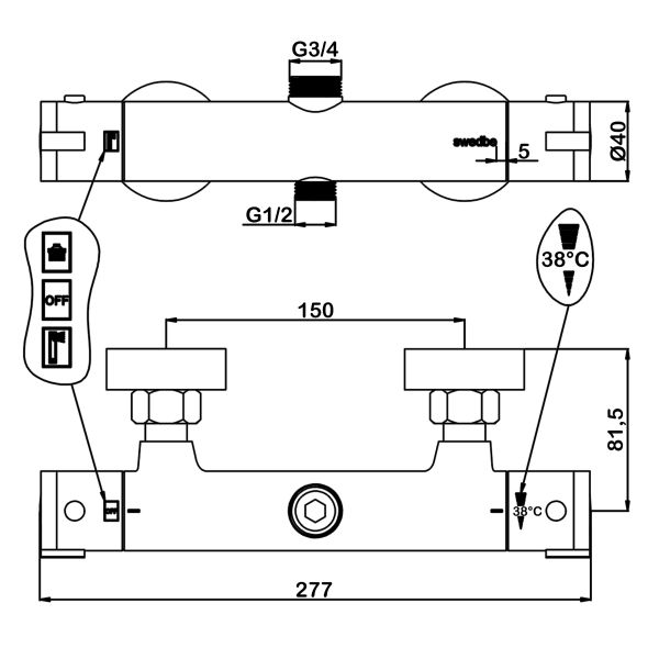 Семейный душ с термостатическим смесителем для душа Swedbe Hermes 9091G1