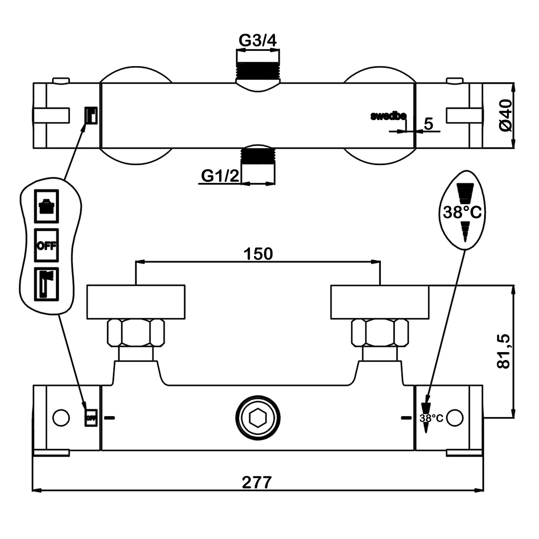 - термостатический смеситель для душа в комплекте; - керамическая кран-букса;