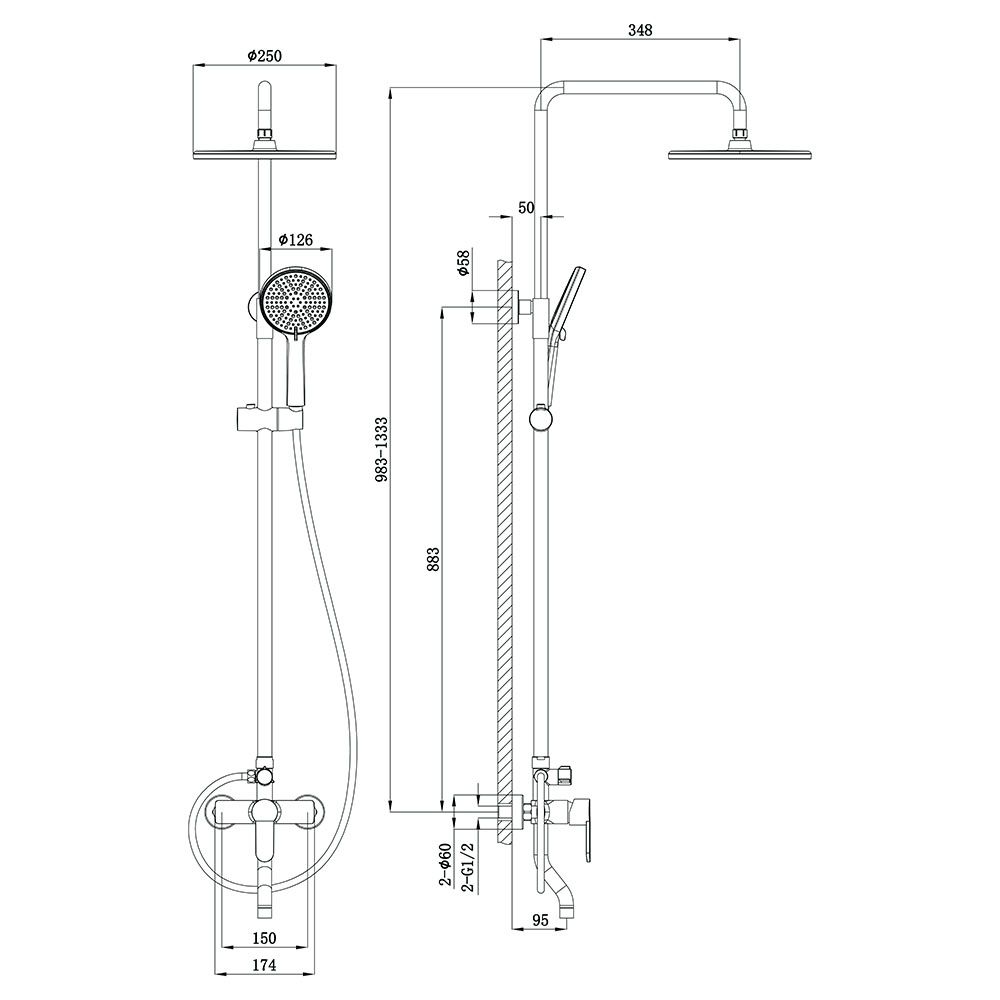 Душевая стойка TURI, хром глянец
