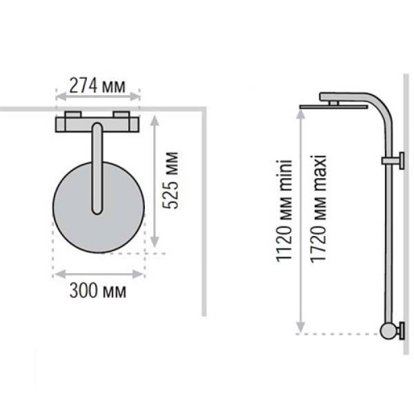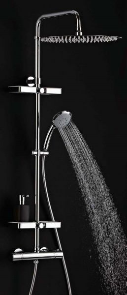 Эксклюзивный, экстра-плоский верхний тропический душ D400 mm. -Ручной Душ: -Душ D 95 mm ABS с 3-х позиционной массажной лейкой система Декальцинации (легкая очистка известковых отложений) -Экономичный расход воды -Хромированные корпус и резьба -Гибкий силиконовый шланг 1.75 м. Штанга: -Душевая штанга из нержавеющей стали с закрепляющимися двухсторонними мыльницами -Регулировка по высоте min 1120 max 1720 mm. -Пристенный вариант установки. -Термостатический смеситель NF.Блокируемая температура +38 C с функцией Анти-Ожог