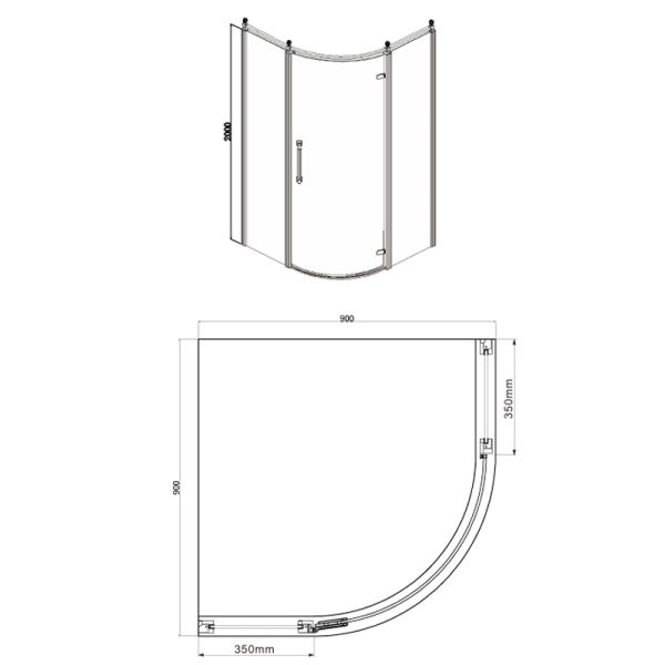 Душевое ограждение Azario ONTARIO AZ-NBB2231-L 900 GOLD