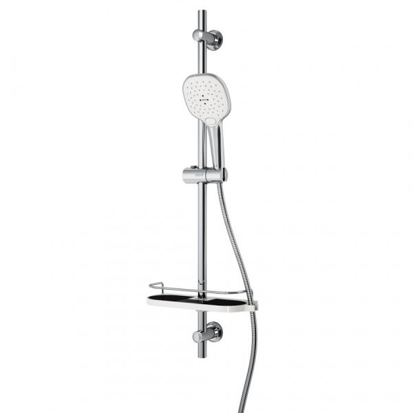 Современному душевому комплекту из коллекции Prime есть чем порадовать своих обладателей: ручной душ с 5-ю функциями, хромированный шланг, регулировка по высоте, эргономичная полка и стильное цветовое решение. А приятным бонусом для практичных хозяев станет долговечность и более чем привлекательная цена.