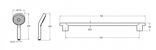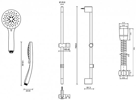 Душевой гарнитур Jacob Delafon Awaken E99898-BL• Высота, см: 70.9
