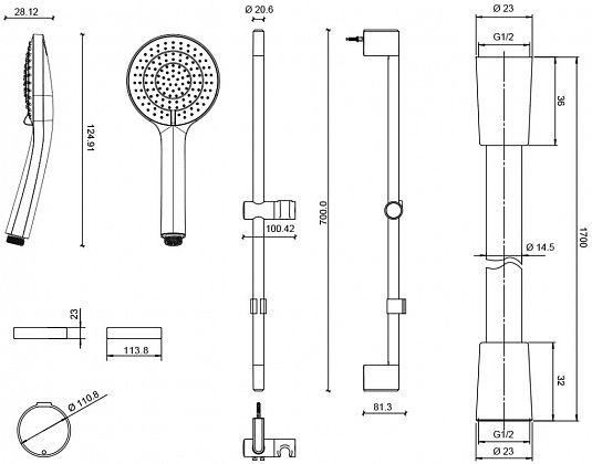 Душевой гарнитур Jacob Delafon Elite E32910-CP• Высота, см: 70