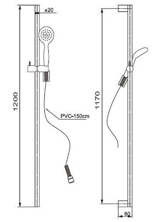 Высота душевой штанги: 120 см