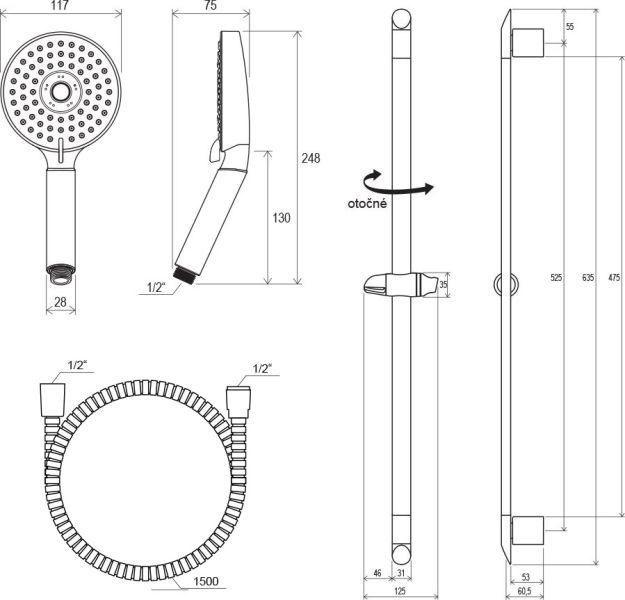 • душевой держатель: 60 см, подвижный