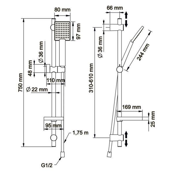 Душевой комплект Swedbe Hermes 5109B - однорежимный ручной душ; - лат... Подробнее