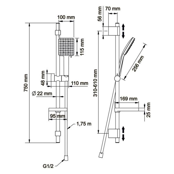 • Размер ручного душа, см: