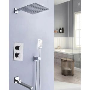 В правильно выполненном дизайне ванной комнаты нет ни одной лишней детали. Душевая система- это не только высококачественные современные технологии, это стильный дизайн и возможность добавить интересный акцент. Например, выбрав элегантный встраиваемый душевой комплект Weber с термостатом на 3 положения, цвет хром Душ для тех, кто ценит каждый момент своей жизни. Комплектация: ? Излив поворотный латунь 24 см. ? Верхняя лейка нержавеющая сталь размер 25*25 см. ? Длинна верхнего кронштейна 40 см. ? Шланг 150 см. ? Лейка ручная нержавеющая сталь. ? Встраиваемый смеситель, материал латунь ? Глубина его погружения в стену 8 см