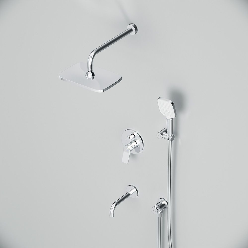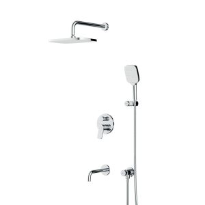 Набор встроенного оборудования X-Joy - идеальное решение для вашей ванной комнаты. Встроенный механизм освобождает ванную комнату от лишних деталей превращая пространство в идеальное место для себя. Набор включает в себя: верхний тропический душ  21x30 см, ручной душ, держатель ручного душа, излив и смеситель.