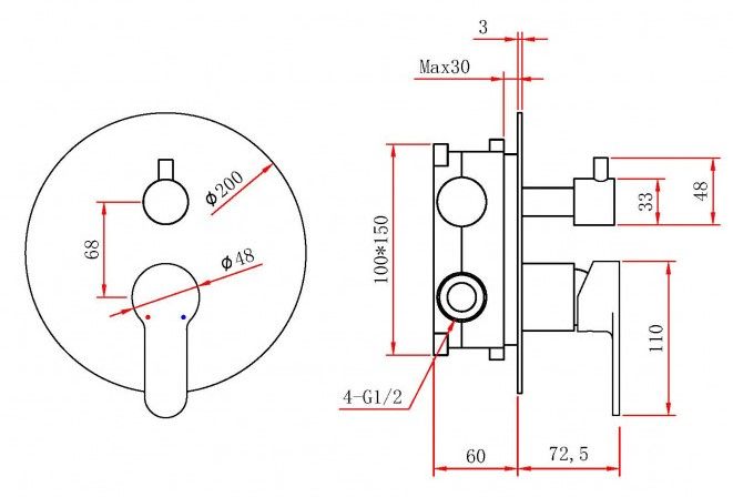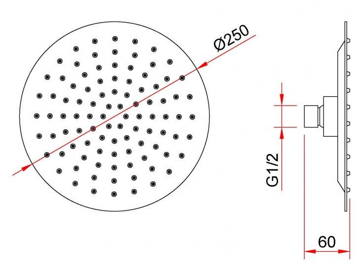Размер верхнего душа, см:25
