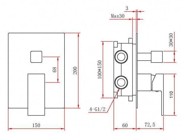 Латунный корпус (квадрат/круr)Душевой шланг 150 см из нержавеющей стали (внутри epdm) Рычажное управлениеСистема против известковых отложенийЭкономия расхода водыКерамический картридж 28 л/минДержатель верхнего душа из нержавеющей сталиДержатель ручного душа из латуниВерхний душ нержавеющая стальСтандарт подводки ½”Вылет верхнего душа: 40 смКол-во режимов ручного душа: 1