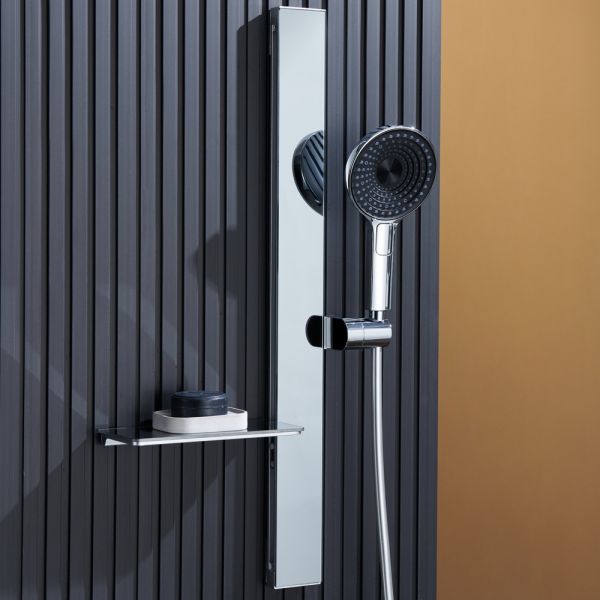 В первую очередь, стоит отметить стильный и современный дизайн этой душевой системы. Она выполнена в элегантном хромированном цвете, который прекрасно сочетается с любым интерьером. Благодаря компактным размерам, данная модель не займет много места в вашей ванной комнате и при этом будет смотреться очень гармонично.