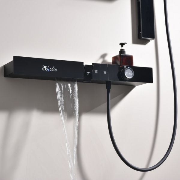 Внутри системы установлен современный LED-дисплей для контроля температуры воды, что делает использование душевой системы еще более удобным и комфортным.