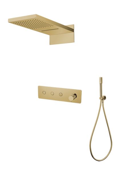 Душевой комплект Boheme Fusion 130-G С ВНУТРЕННЕЙ ЧАСТЬЮ великолепно дополнит вашу ванную комнату своим незаменимым функционалом. Душевые комплекты Boheme включают в себя все необходимое для создания идеального душевого пространства. Душ Boheme 130-G имеет 3 режима настройки потока струи, что даст возможность настройки системы под себя. Материал шланга металлический отлично препятствует скручиванию, и долгое время не теряет свои свойства. Диаметр верхнего (тропического) душа, которым оснащен 130-G составляет 55 см.Душевой комплект Boheme Fusion производится из высококачественных материалов (латунь), с отсутствием вредных примесей. Основной цвет исполнения Fusion 130-G – золото, идеально подходящий к душевой зоне выполненной в современном стиле. Бренд Boheme – Италия, все душевые системы произведены с использованием современных технологий. Душевой комплект Boheme Fusion 130-G С ВНУТРЕННЕЙ ЧАСТЬЮ верный выбор при создании комфортной душевой зоны в современной ванной.
