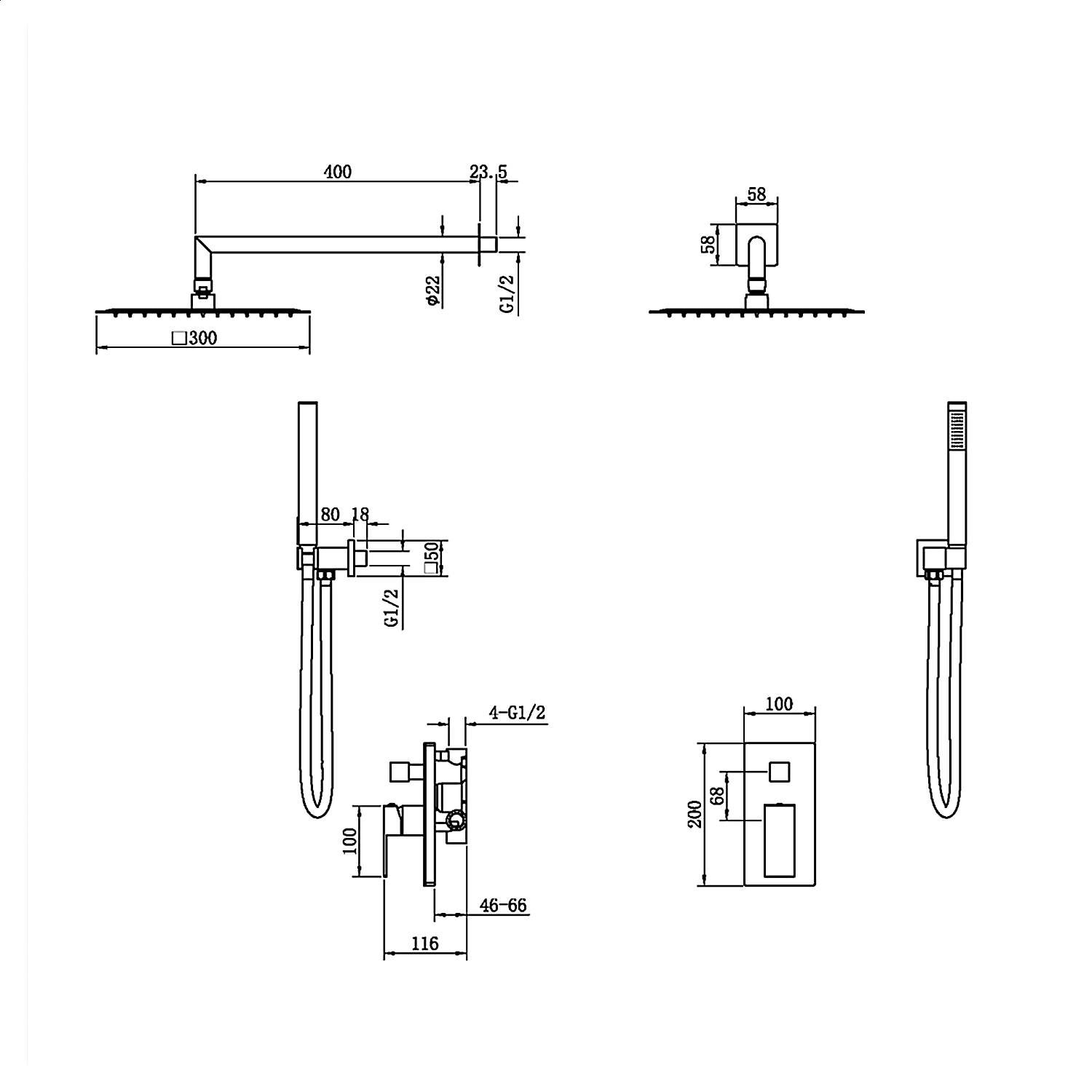 - Размер верхнего душа: 30 см