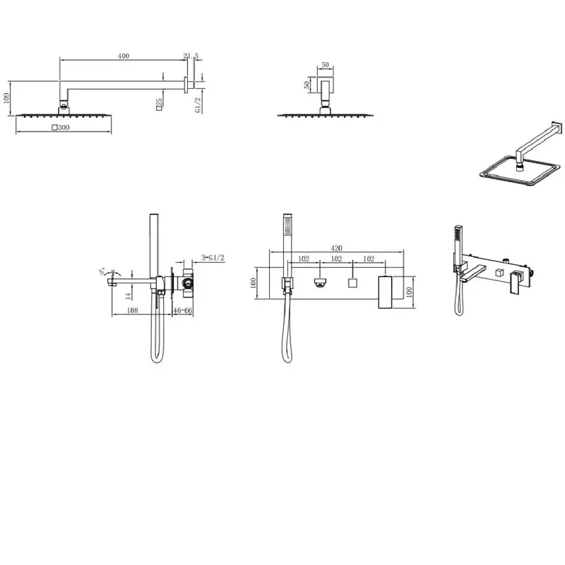 Душевой комплект Boheme Qubic 474-BRB брашированная бронза купить