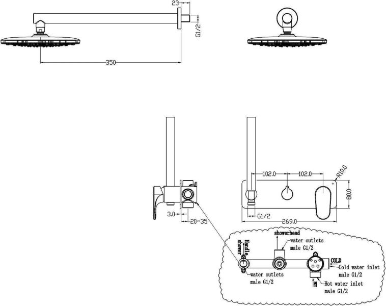 Размер верхнего душа, см:20