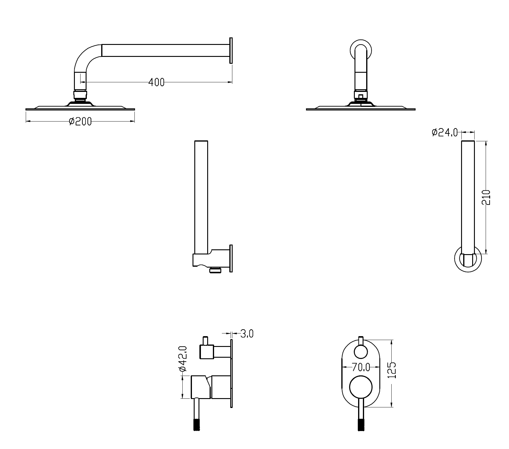 • Размер верхнего душа, см: