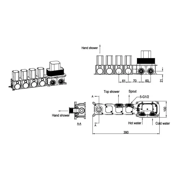 Размер верхнего душа, см:55