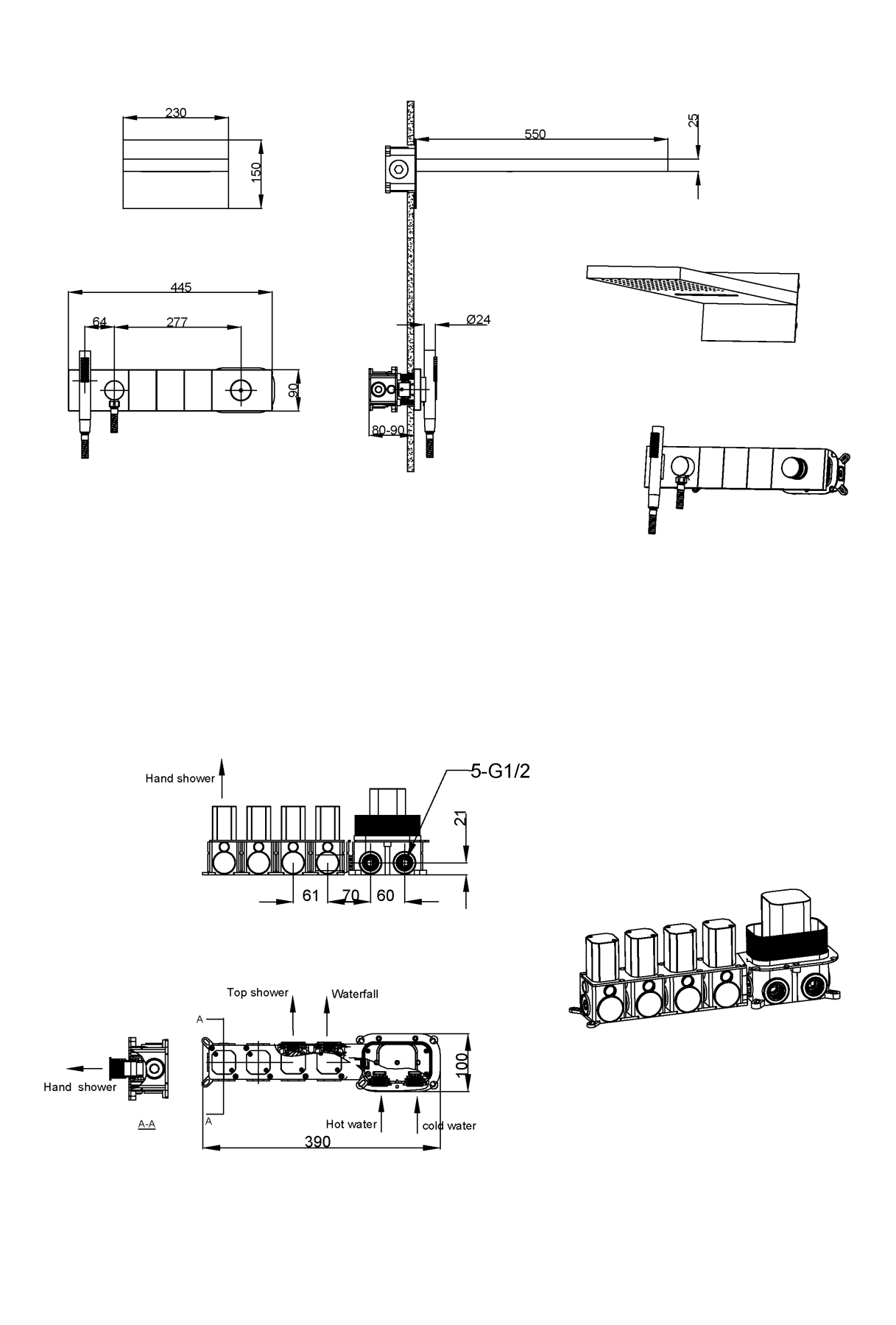 Ультра плоский дизайн, инновационное управление режимами позволит создать идеальный комфорт. Верхний душ размером 550мм*230мм с функцией тропического душа и водопада. Форсунки soft-silicone с функцией антикальк и комфортной очисткой. Магнитный держатель лейки Каскадный излив как дополнительная опция. Картридж Sedal, переключатели Neoperl.