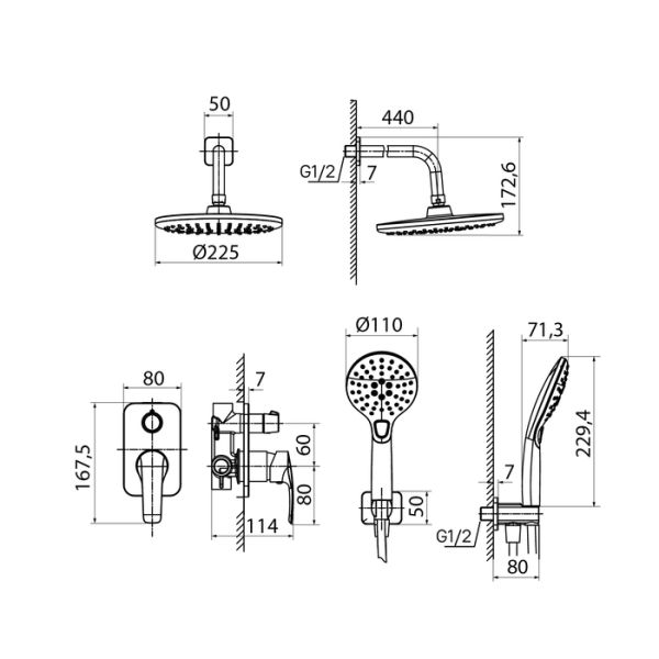 Готовый набор встраиваемой сантехники включает всё необходимое для обустройства комфортной душевой. Так выгоднее и удобнее, чем покупать всё по отдельности.