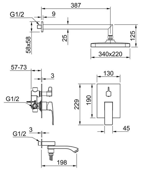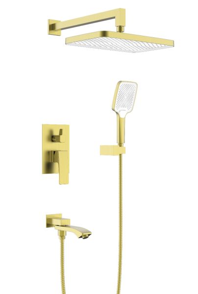 Душевая система встраиваемая Raglo R01.27.03, сатин золотойМатериал: латунь.Управление: однорычажное.Механизм: керамический картридж.Излив: поворотный. Аэратор.Размер верхнего душа (ШхД): 340х220 мм.Форма верхнего душа: прямоугольная.Форма ручного душа: прямоугольная.Количество режимов струи ручного душа: 3.Стандарт подводки: G 1/2. Монтаж: встраиваемый.Излив - функция переключения.