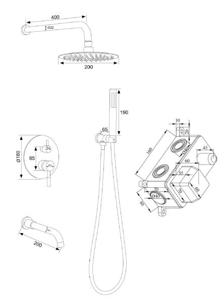 Размер верхнего душа, см:20