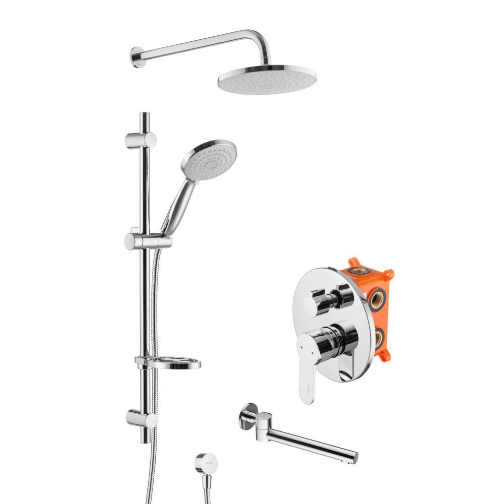 Swedbe Platta 5541 Душевой комплект со встроенным смесителем (с монтажным боксом), верхним душем и поворотным изливом.ПРЕИМУЩЕСТВА: