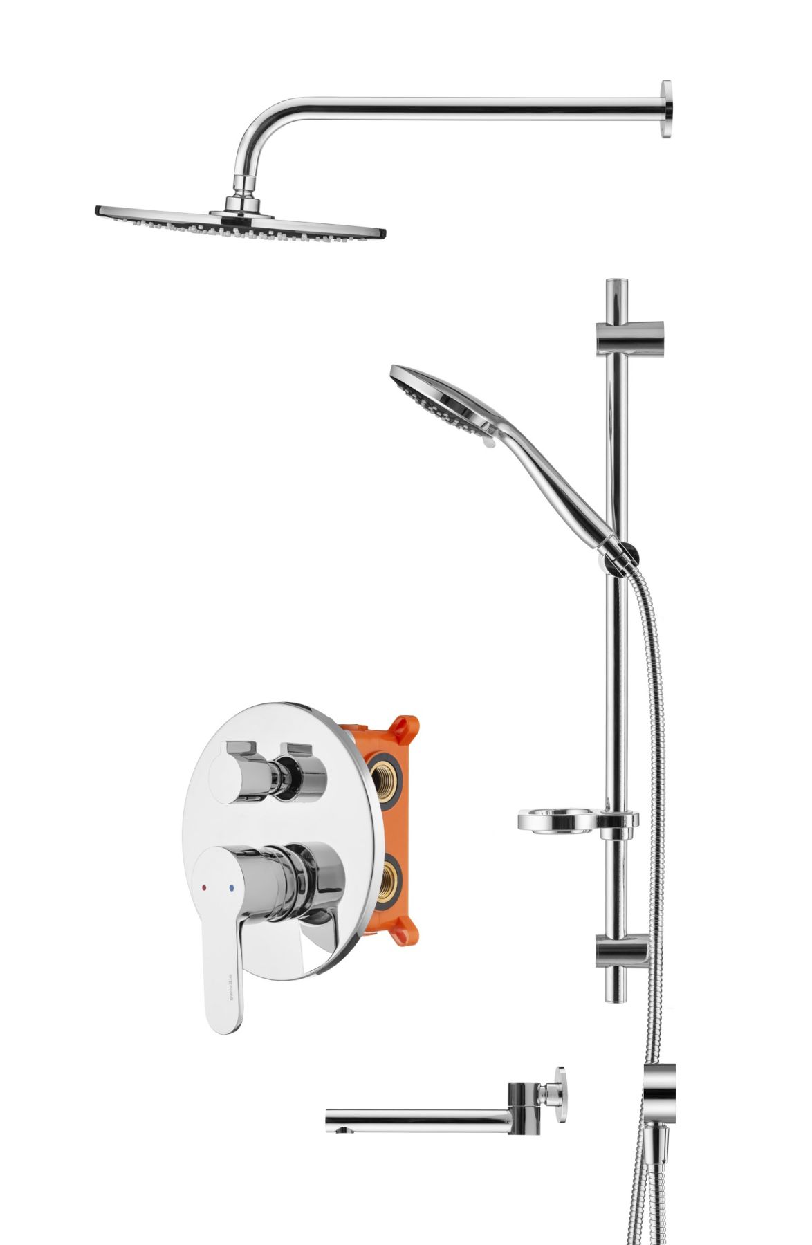 Swedbe Platta 5542G1 Душевой комплект со встраиваемым смесителем (с монтажным боксом), верхним душем и поворотным изливом.