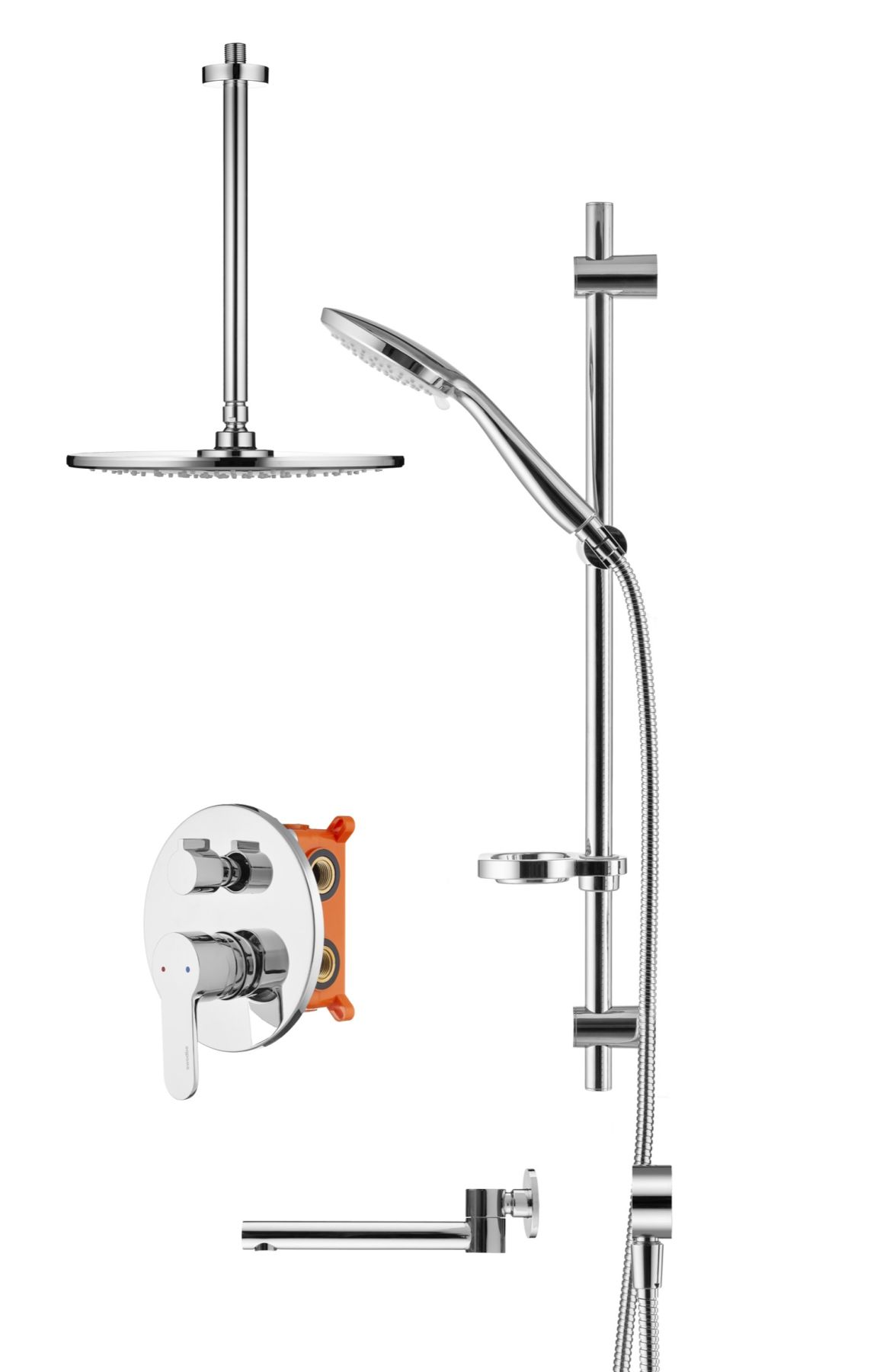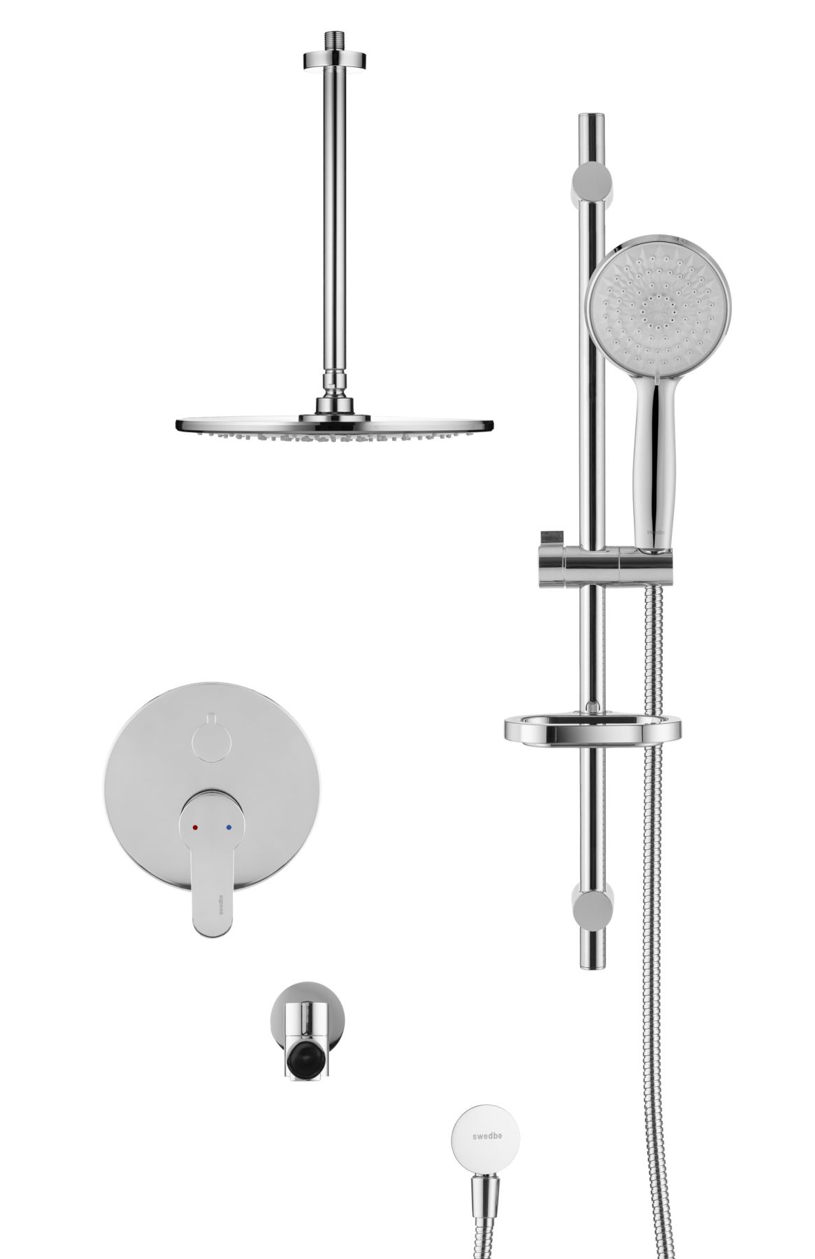Swedbe Platta 5543 Душевой комплект со встроенным смесителем (с монтажным боксом), верхним душем и поворотным изливом.