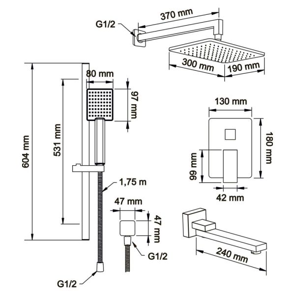 Swedbe Platta 5545 Душевой комплект со встроенным смесителем (с монтажным боксом), верхним душем и поворотным изливом.ПРЕИМУЩЕСТВА: - готовое решение для ванной комнаты;