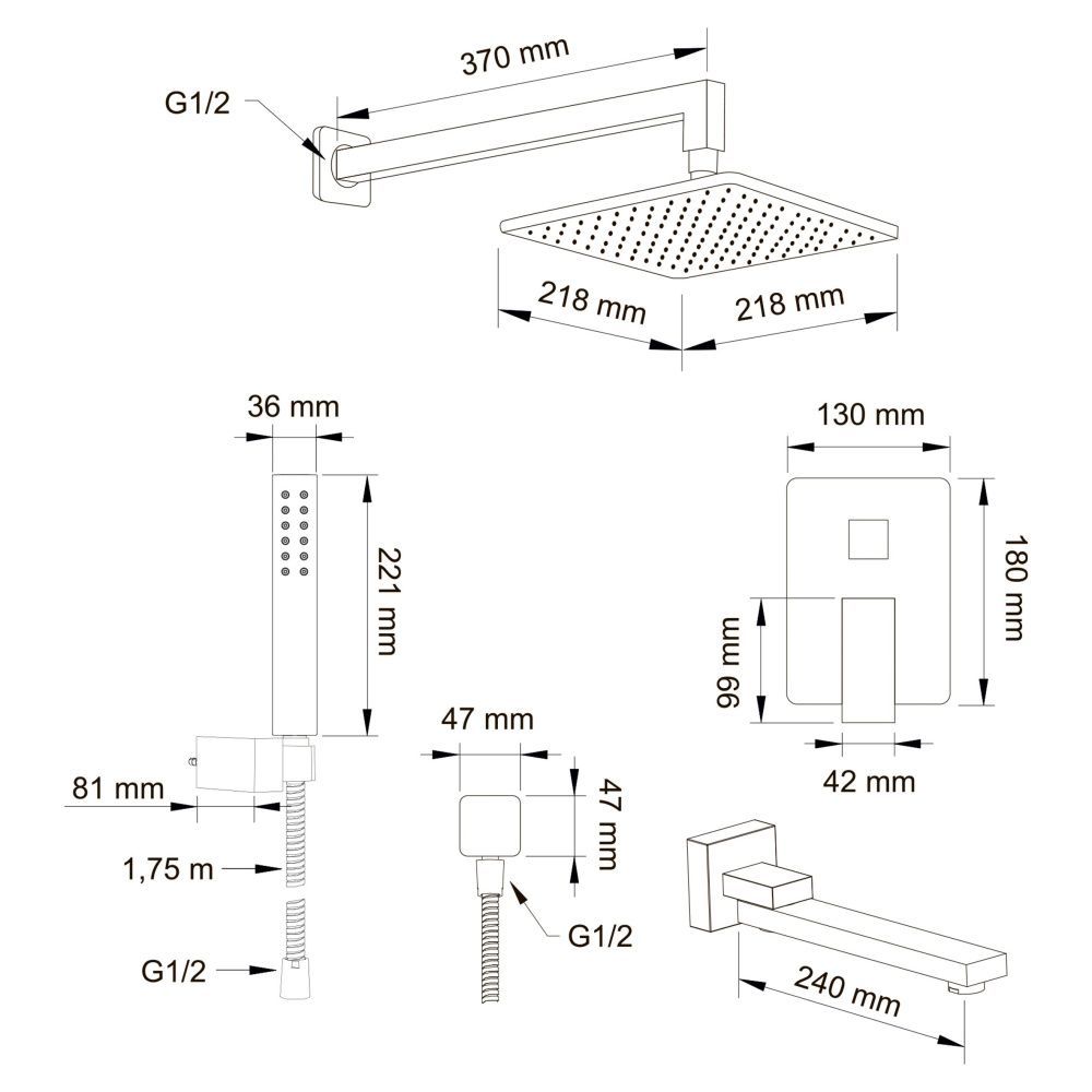 Душевой комплект Swedbe Platta 5546 хром
