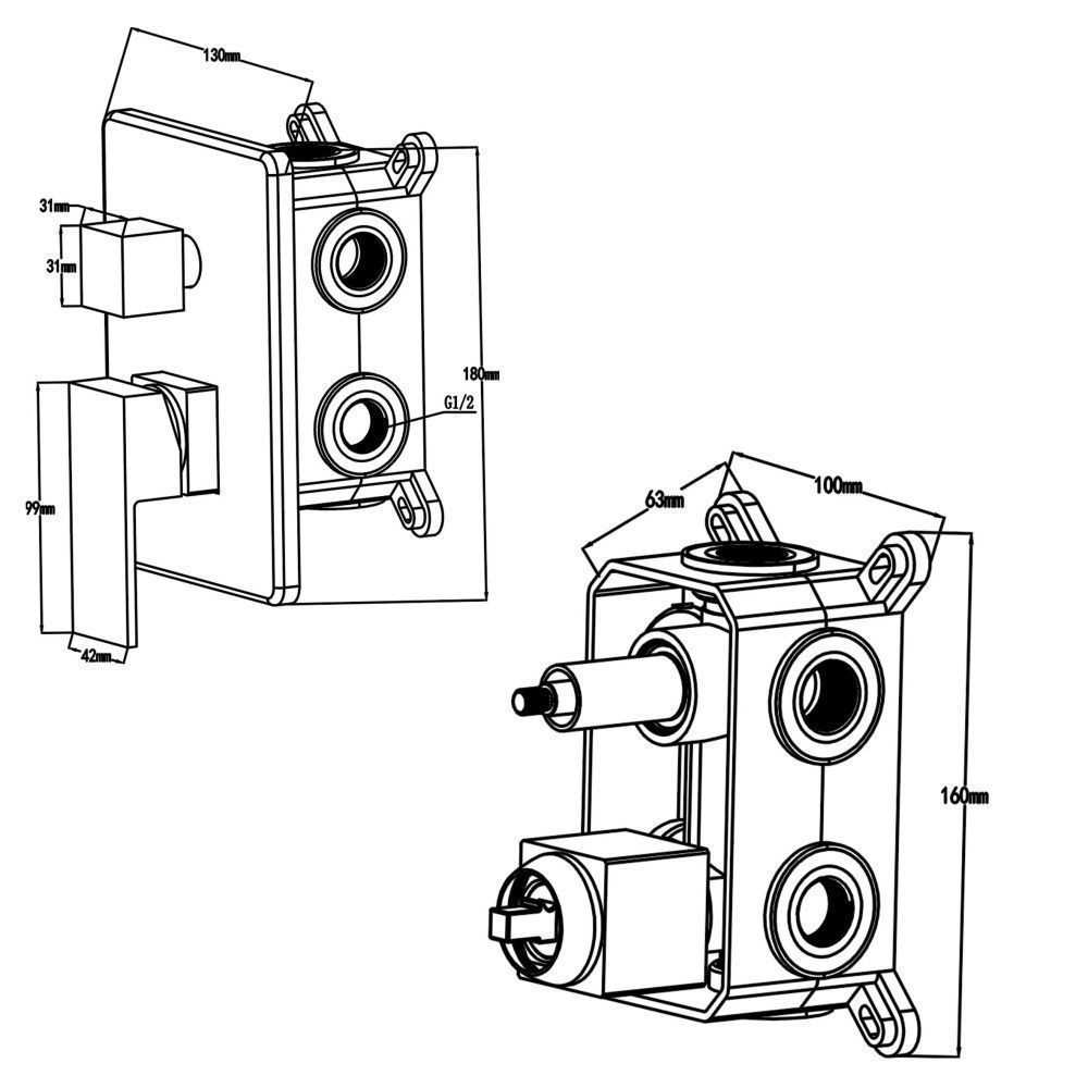 Swedbe Platta 5546 Душевой комплект со встроенным смесителем (с монтажным боксом), верхним душем и поворотным изливом.
