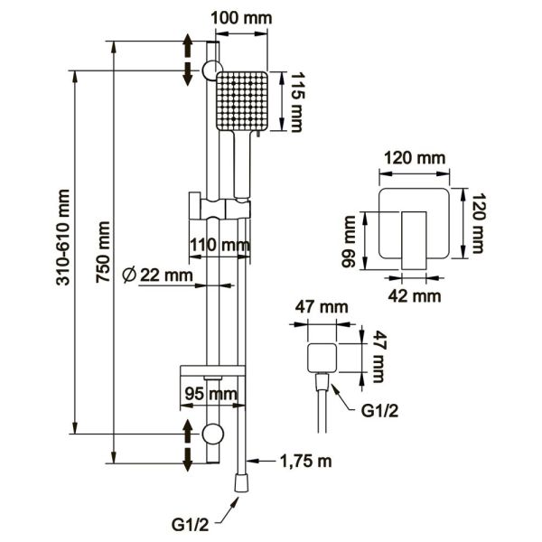 Душевой комплект Swedbe Platta 5553B чёрный