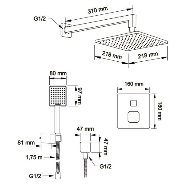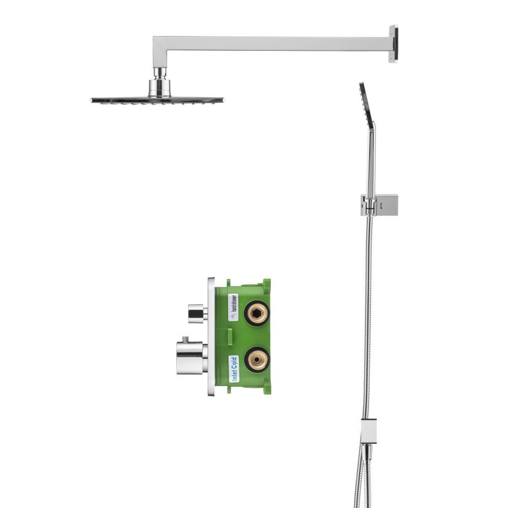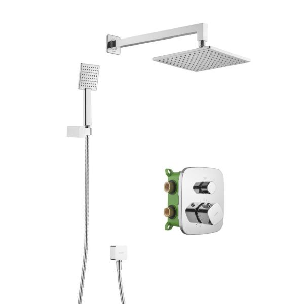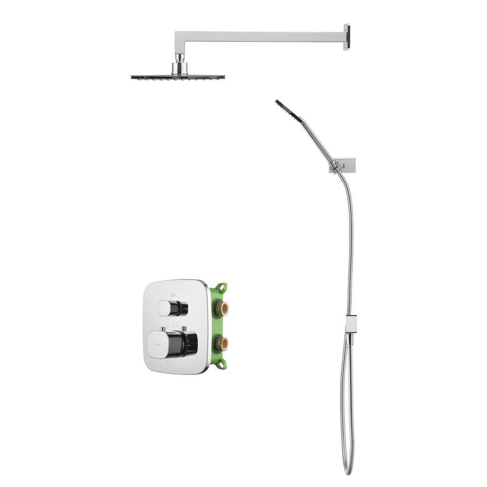 Душевой комплект со встраиваемым термостатическим смесителем на 2 выхода (в монтажном боксе), верхним душем 218х218 мм и лейкой 80х97 мм (1 режим)