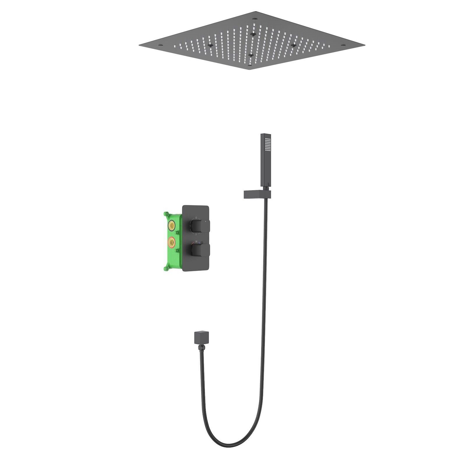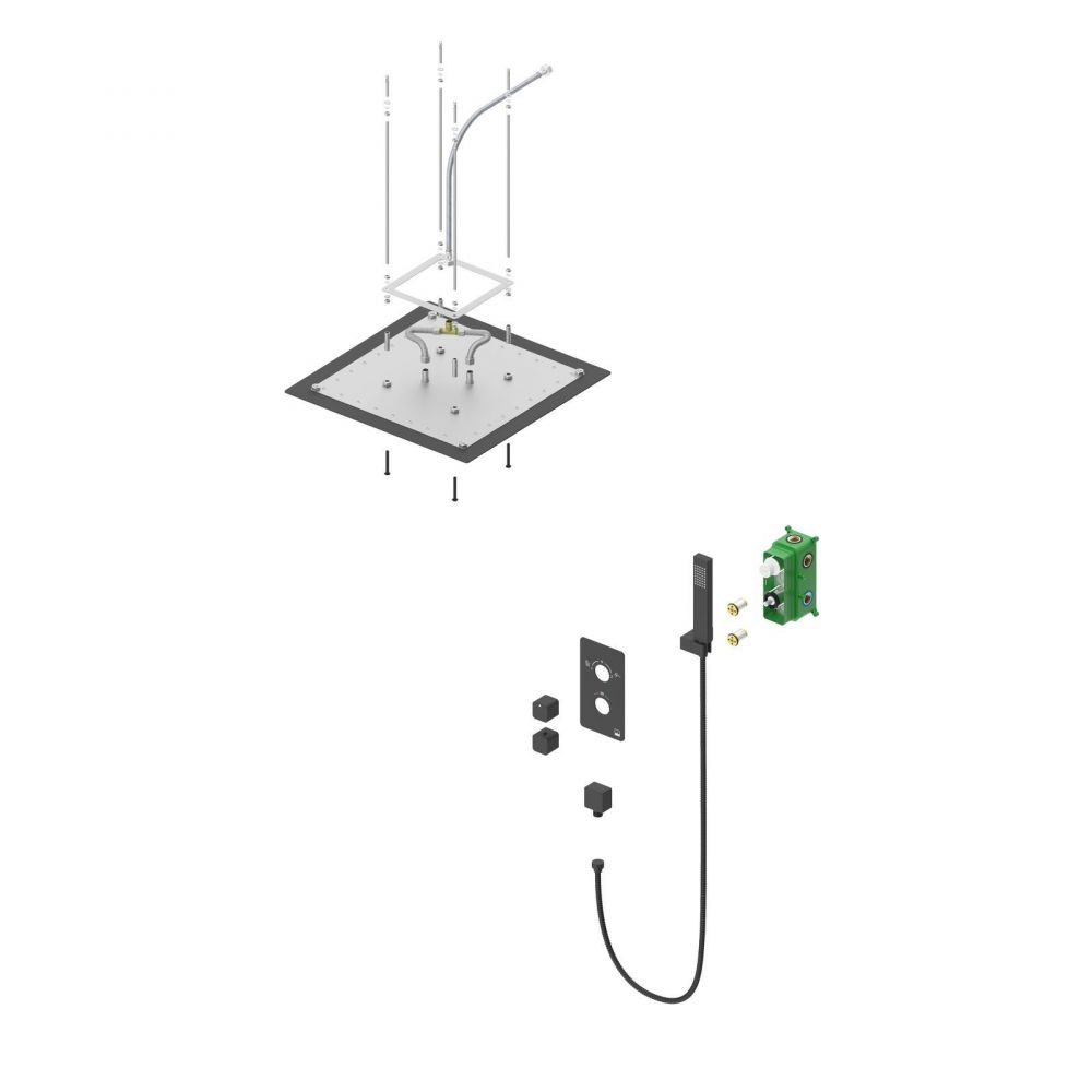 "Черное золото"- неизменно эффектный и привлекающий внимание цвет. Приглушенный мягкий оттенок черного, подчеркнет форму раковины или цвет мебели.Душевая система с термостатом Timo Petruma 5029 относится к премиальному сегменту, предназначена для монтажа в полой или твердой стене. Термостатический картридж поддерживает стабильную температуру воды, обеспечивая максимально комфортные условия для принятия водных процедур. Встроенный потолочный душ большого размера создает имитацию проливного дождя, вода обливает человека целиком. Регулируя напор воды можно получить массажное воздействие, что очень полезно для здоровья. Основные преимущества встроенной системы: элегантный внешний вид, все коммуникации и крепления спрятаны в стену и потолок, снаружи видны только декоративные элементы. Установить встроенную систему можно в любом месте. Использовать такой смеситель очень удобно, регулировка температуры воды осуществляется ручкой термостата (расположена снизу). Режим "тропический душ" и увеличение напора осуществляется поворотом ручки дивертора (расположена сверху) влево. Для переключения в режим "ручной душ" верните ручку дивертора в исходное положение 12:00 (смеситель выключен), а затем поверните вправо. Увеличение напора воды осуществляется поворотом ручки вправо. Сложностей монтажа не возникает при установке элементов душевой системы опытным сантехником. Внимательно изучите инструкцию по монтажу и эксплуатации. Цвет "черное золото" не капризен в уходе, на нем менее заметны загрязнения и мелкие царапины.